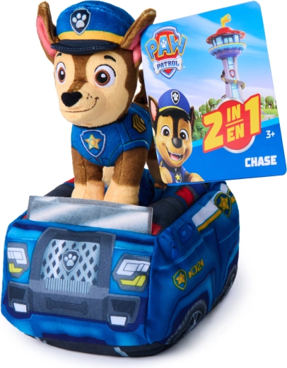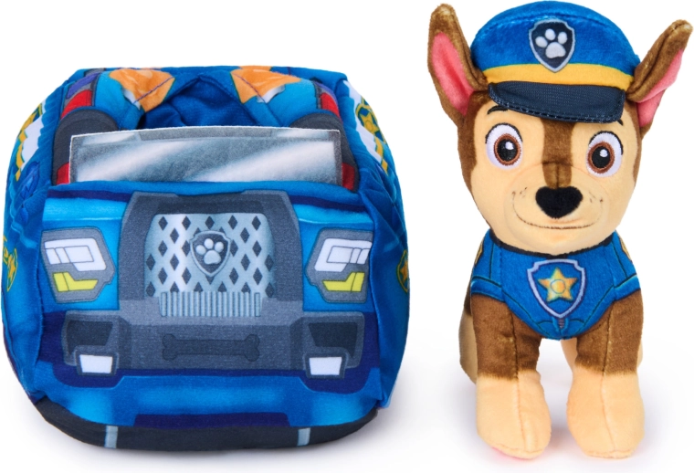 Ta 2v1 plišasti set združuje priljubljenega junaka Chase iz PAW Patrol z mehkim policijskim vozilom. Otroci lahko kužka vstavljajo in jemljejo iz avtomobilčka, razvijajo domišljijo in poustvarjajo reševalne misije iz serije.