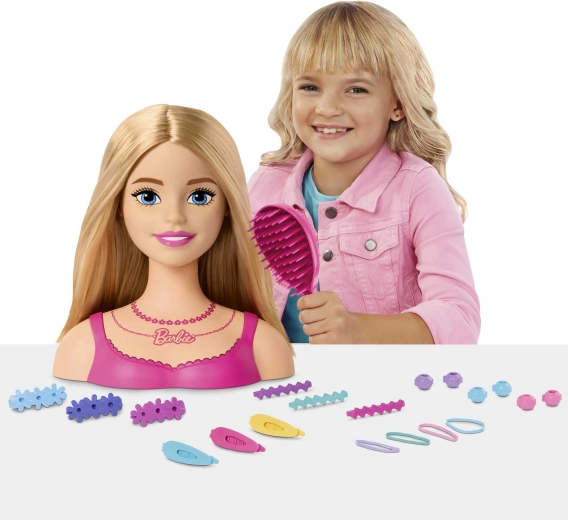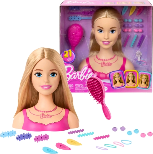 Odkrijte ustvarjalni svet pričesk z glavo za česanje BARBIE in bogatim kompletom 20 barvitih dodatkov. Otroci lahko češejo, pletejo, okrašujejo in preizkušajo najrazličnejše pričeske – od kitk do elegantnih fig. Kakovostna izdelava znamke Mattel zagotavlja dolge ure zabave ter spodbuja ustvarjalnost in fino motoriko.