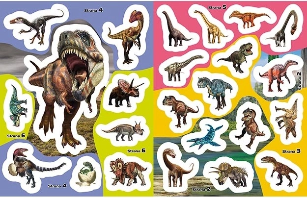 Zabavna nalepkasta knjižica za male ljubitelje prazgodovine. Vsebuje 12 strani in 4 pole nalepk, od katerih imajo nekatere svetleče robove in žarijo v temi. Otroci si zlahka ustvarijo lastne dogodivščine z dinozavri ter urijo domišljijo in fino motoriko.