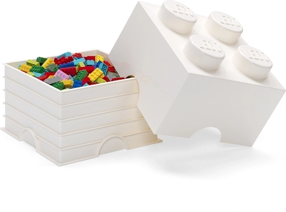 Dizajnerska shranjevalna škatla, navdihnjena z ikonično LEGO kocko, prinaša veselje do pospravljanja in red v otroško sobo. Zahvaljujoč štirim izrazitim izboklinam na pokrovu se škatle med seboj varno zlagajo ter ustvarjajo zabavno in praktično shranjevalno rešitev. Bela barva se zlahka kombinira z drugimi odtenki in se poda v vsak interier.