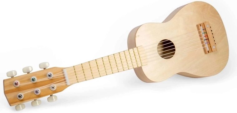 Ta naravna lesena kitara otrokom odpira svet ritmov in melodij. Zahvaljujoč šestim nastavljivim strunam lahko preizkusijo osnove igranja, razvijajo glasbeni posluh in samopredstavitev. Vzdržljiva konstrukcija iz kakovostnega lesa je zasnovana za vsakodnevno otroško raziskovanje.