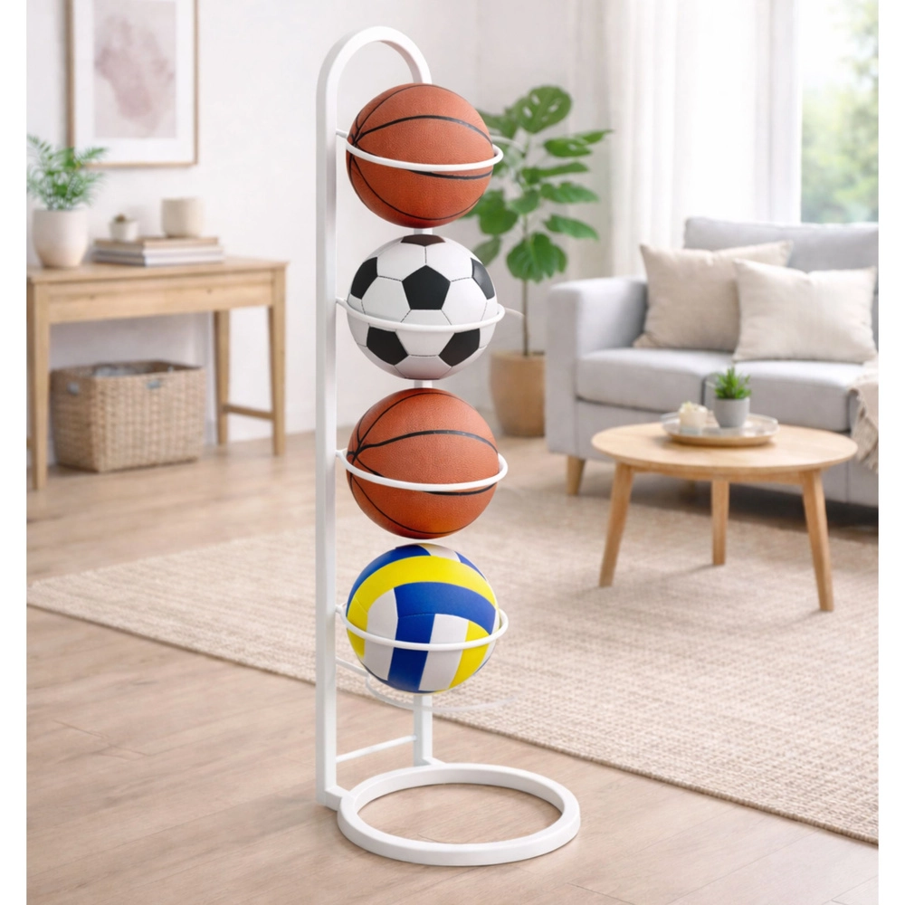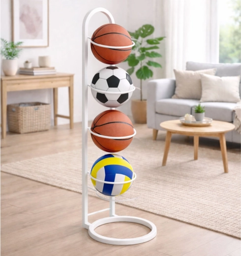 Navpično kovinsko stojalo za žoge, belo – 4 nivoji, prihranek prostora