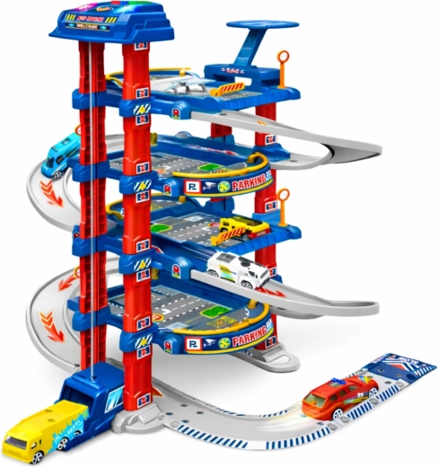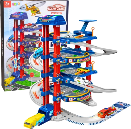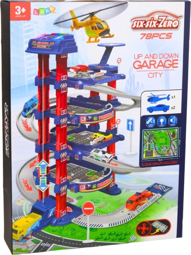 Interaktivno večnadstropno parkirišče z električnim dvigalom, spustno stezo in pristajalno ploščadjo za helikopter nudi otrokom ure ustvarjalne zabave. Robusna konstrukcija, bogata oprema in realistični prometni elementi razvijajo motoriko, koordinacijo in logično razmišljanje.