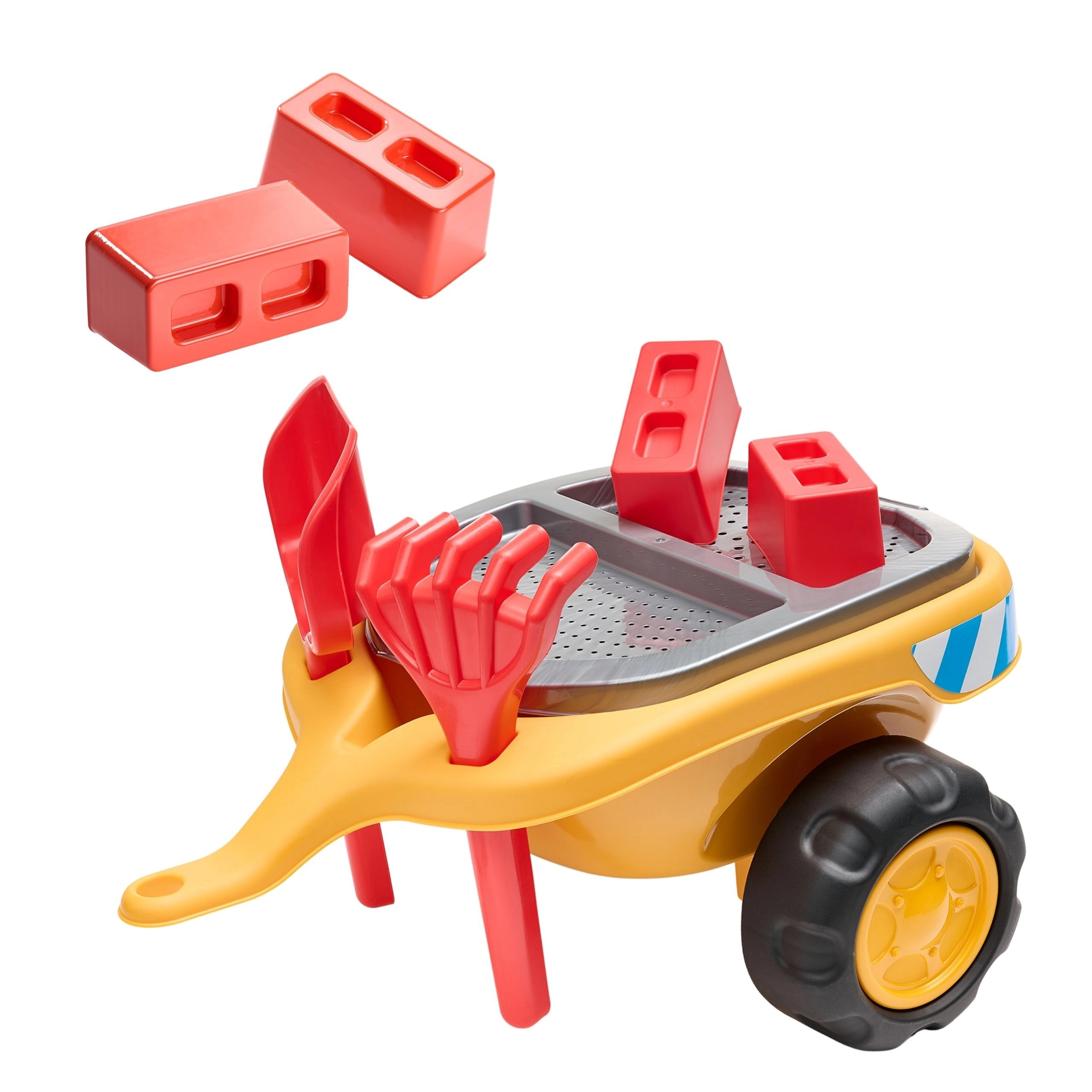 - Igralni set vključen – odstranljiva prikolica, peskovni pripomočki in gradbene kocke.