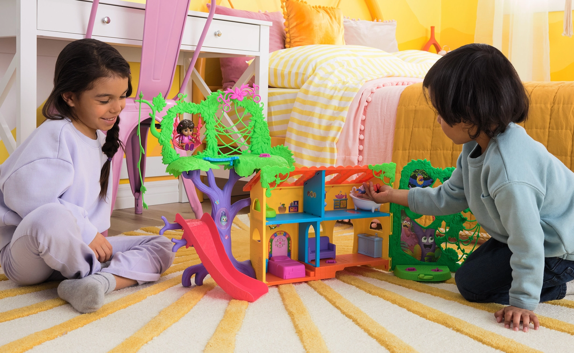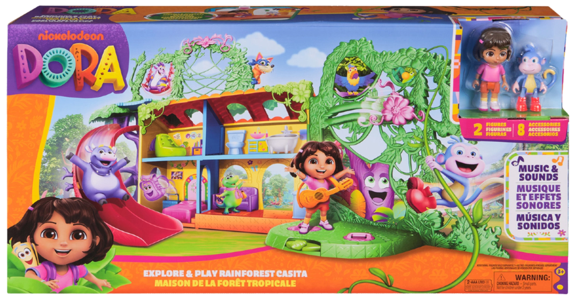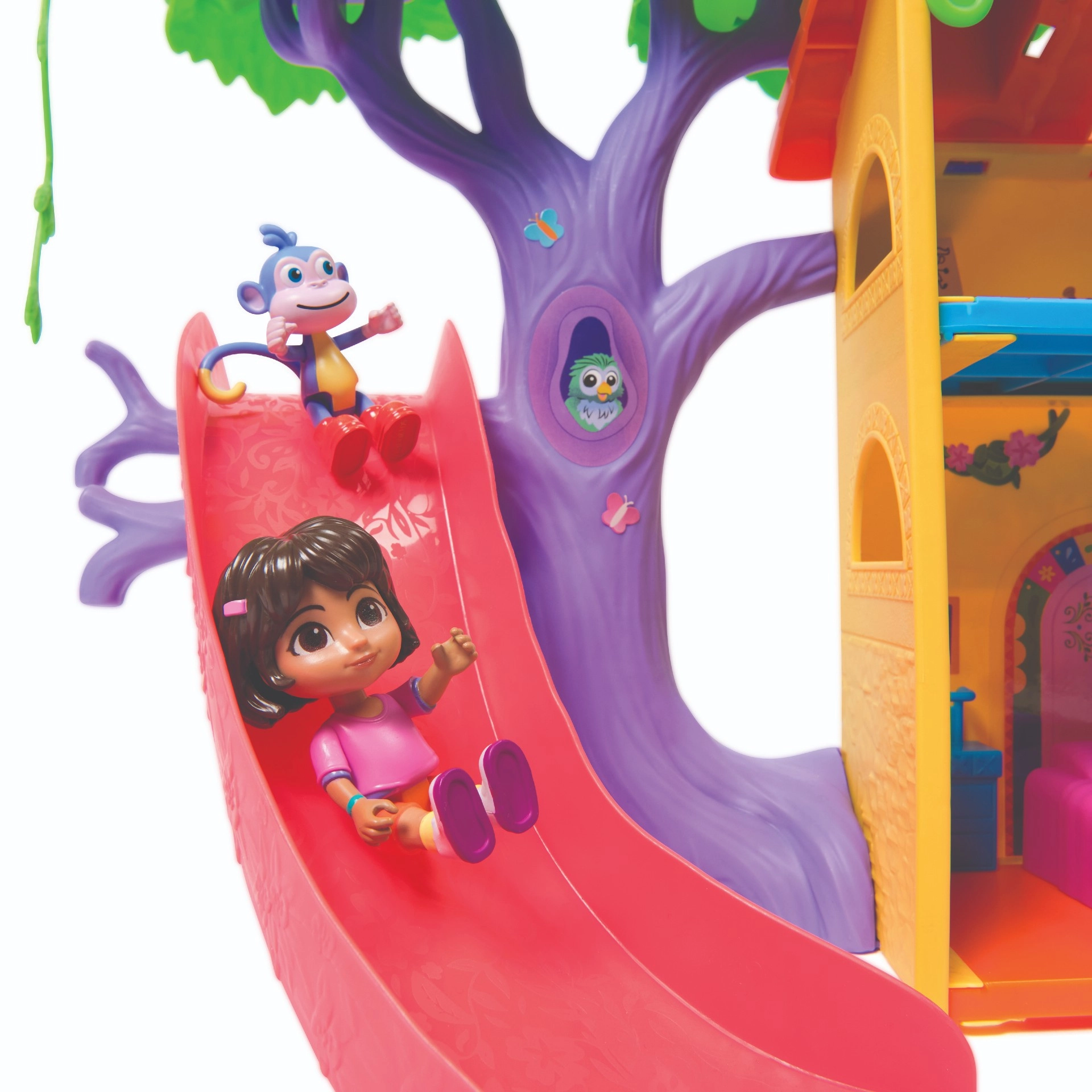Vstopite v barvito hišico v džungli, navdihnjeno s serijo Dora raziskovalka, in se podajte na pustolovščino. Notranjost ponuja več podrobno zasnovanih sob s pohištvom (npr. kavč, kad), medtem ko zunanjost navdušuje z atrakcijami v krošnjah dreves. Z enim samim pritiskom gumba v dnevni sobi zaženete zvočne učinke in glasbo, ki spodbujajo interaktivno učenje in zabavo.