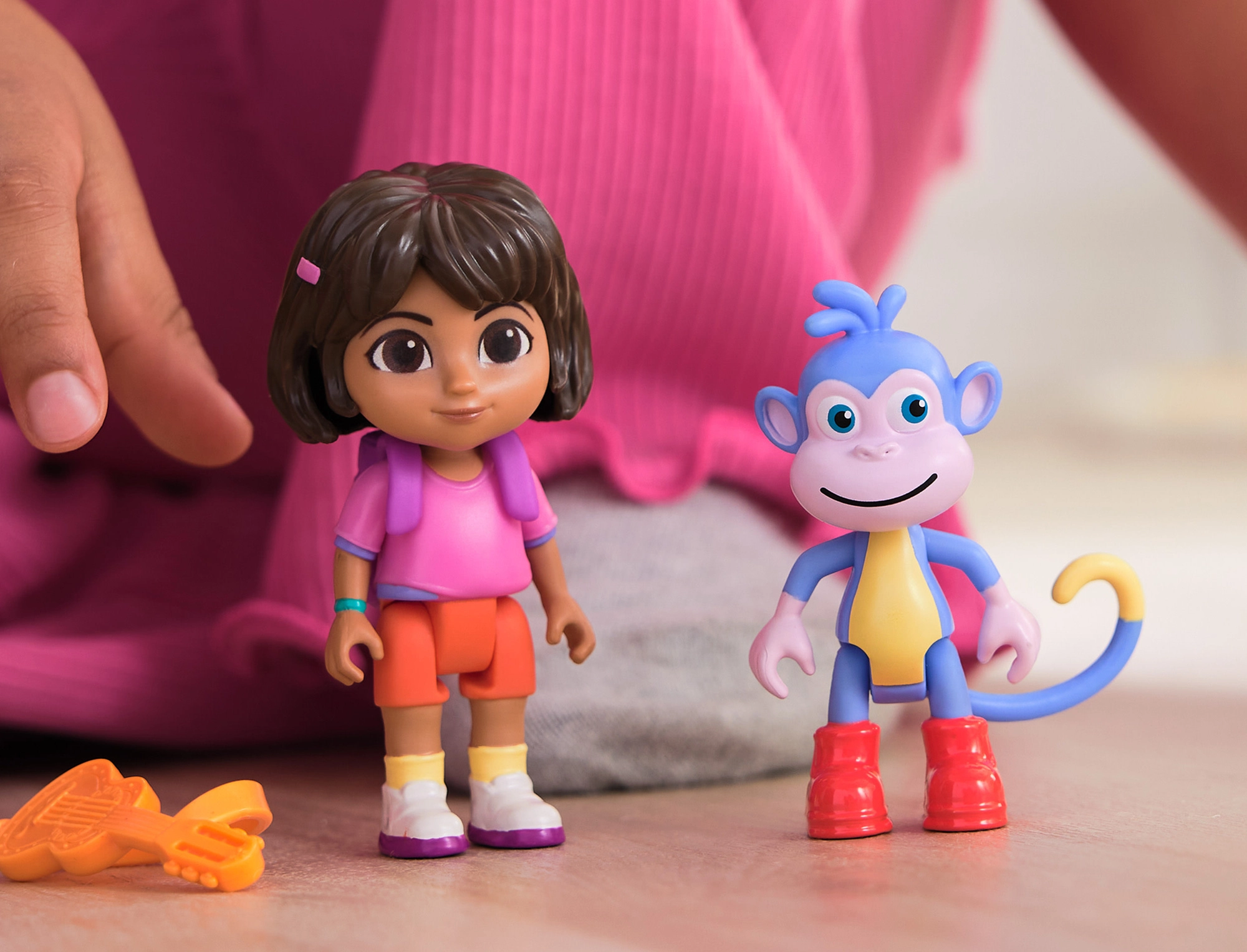 Priložene so gibljive figurice Dore in opičke Bootsa ter ikonični nahrbtnik. Idealno za poustvarjanje prizorov iz serije in lastnih pustolovščin.