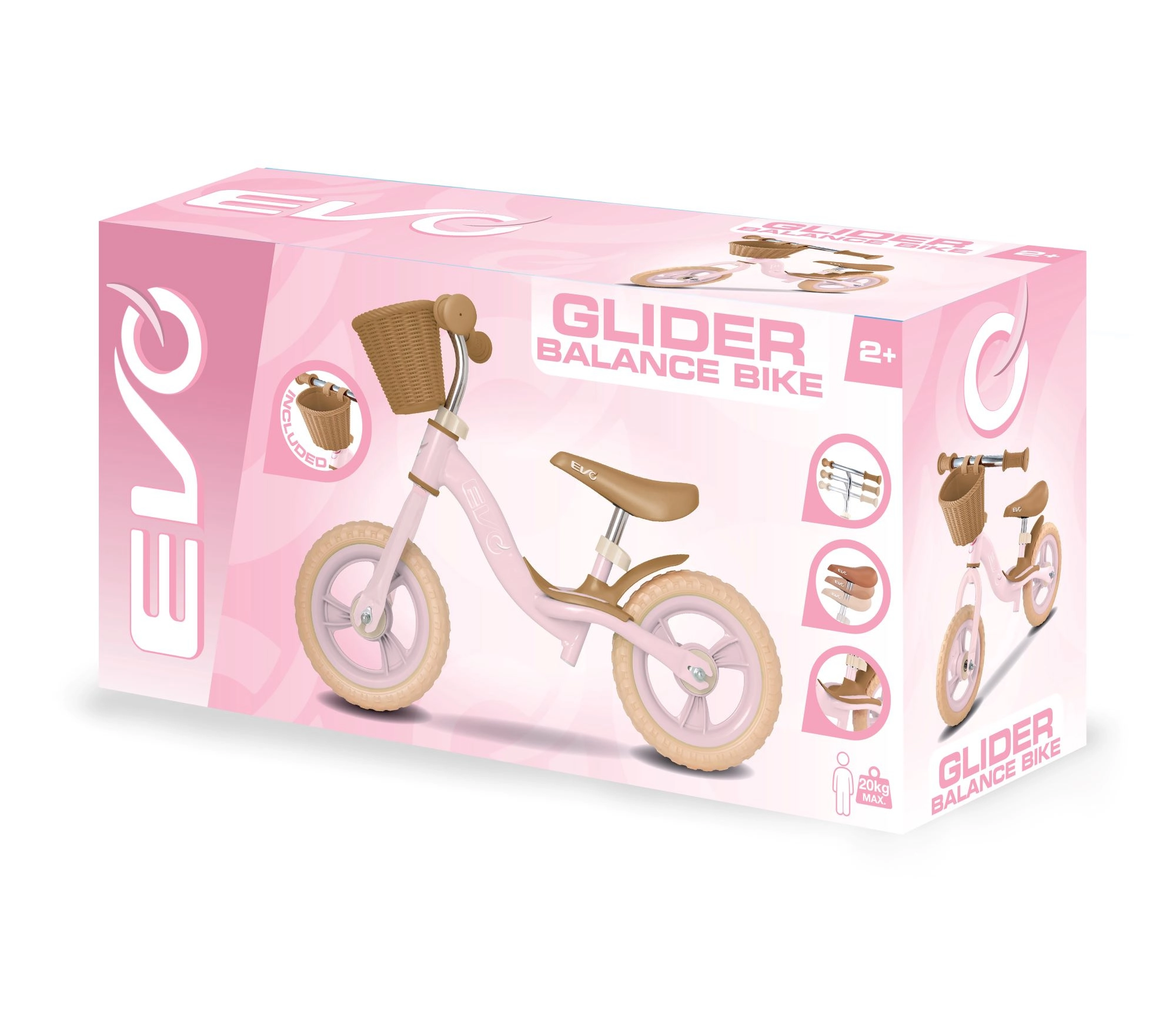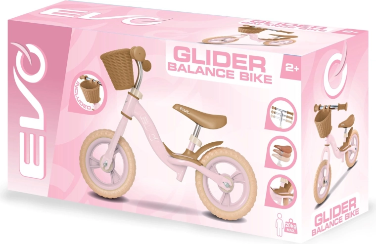 Stilsko otroško poganjalo EVO Glider je idealno prvo kolo za male kolesarje od 2 let. Zahvaljujoč lahkemu okvirju, nastavljivemu sedežu in krmilu ter brezvzdrževalnim 10" EVA kolesom naravno pomaga razvijati ravnotežje in koordinacijo. Praktična sprednja košarica poskrbi za priljubljeno igračo, integrirana stopalka pa podpira vadbo stabilnosti med vožnjo.