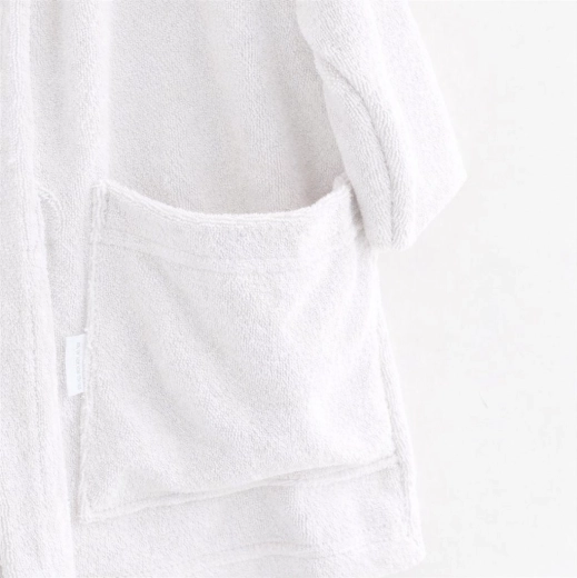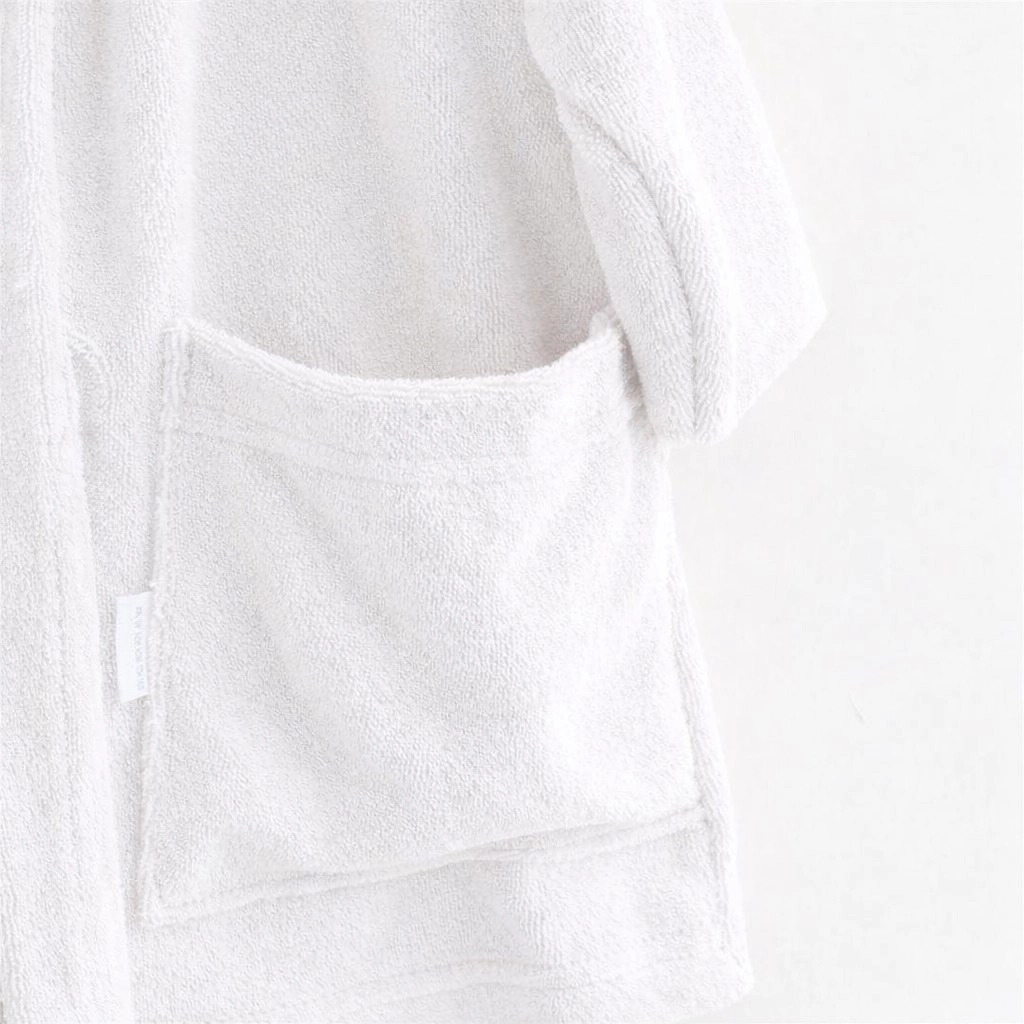 Mehak in topel otroški kopalni plašč New Baby iz kakovostnega frotirja za vsakodnevno udobje po kopeli. Praktična kapuca ščiti mokro glavico pred mrazom, všit pas se ne izgubi, globlji žepi pa shranijo malenkosti. Izdelan iz 100% bombaža s certifikatom OEKO-TEX STANDARD 100, gramatura 240 g/m². Velikost 92/98, barva bela.