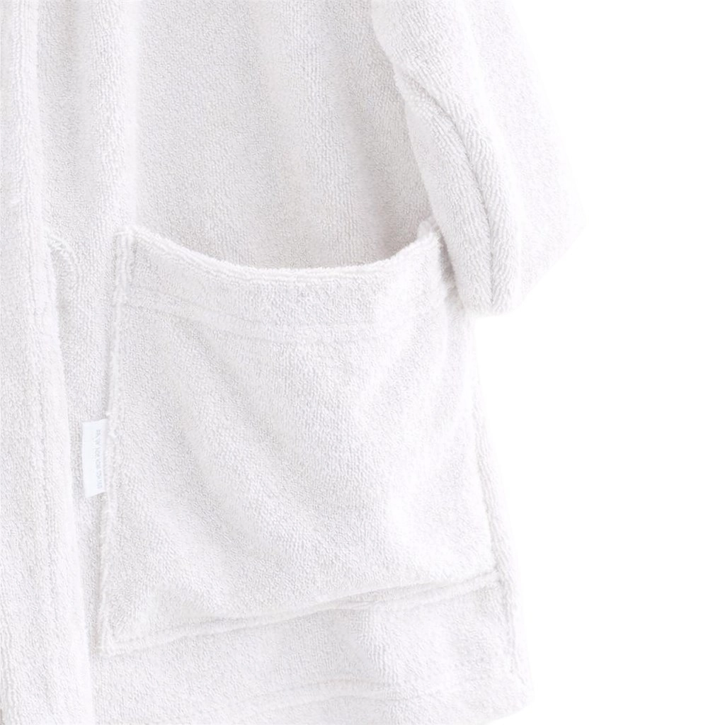 Univerzalna bela barva in skrbna izdelava naredita ta plašč zanesljivega spremljevalca po vsakem kopanju. Velikost 92/98 ustreza približno starosti 2–3 leta (orientacijsko – ravnajte se po merah na fotografiji).