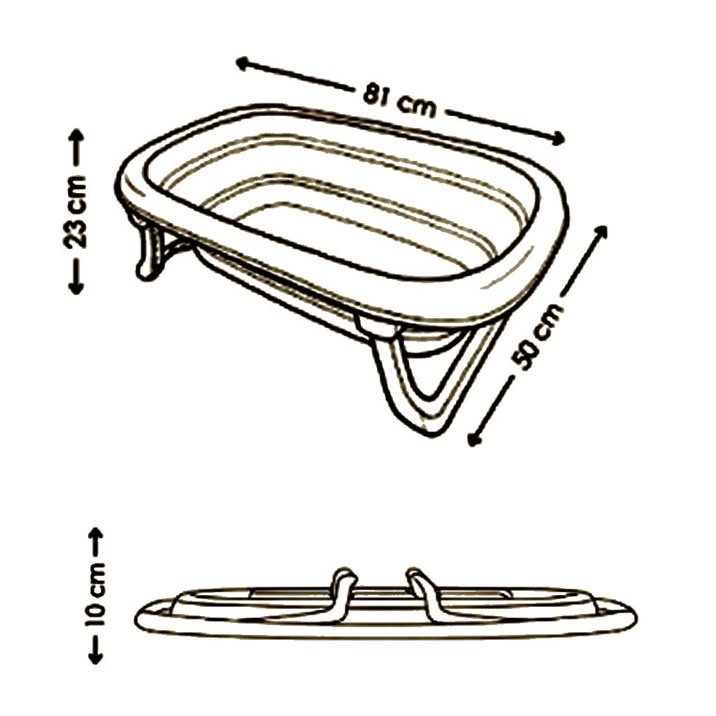 Ergonomsko zasnovana kad se zlahka zloži na višino približno 10 cm, zato prihrani prostor v kopalnici in doma. Stabilne plastične nogice se preprosto zložijo pod kad in zagotavljajo varno in čvrsto postavitev med kopanjem.
