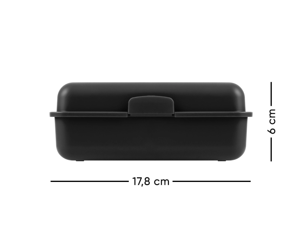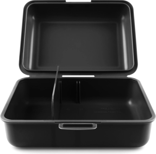 Z delilno pregrado boste udobno ločili sadje, pekovske izdelke ali drobne prigrizke. Zapiranje z enim zapahom zagotavlja, da se škatla med prenašanjem ne odpre. Za ohranitev kakovosti materiala in potiska se pranje v pomivalnem stroju ne priporoča.