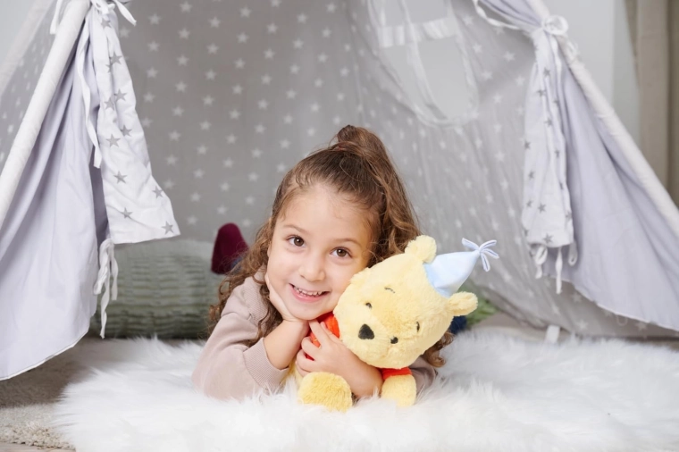 Nežen, prijeten material naredi medvedka idealnega spremljevalca za spanje in počitek. Otroci ga bodo vzljubili na prvi dotik.