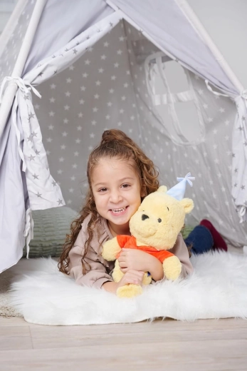 Ljubek plišasti medvedek WINNIE THE POOH višine 25 cm bo razveselil otroke in odrasle. Ima izjemno mehko in nežno dlako, varne izvezene poteze obraza ter značilno rdečo majico. Odličen za crkljanje, spanje in kot okras otroške sobe.