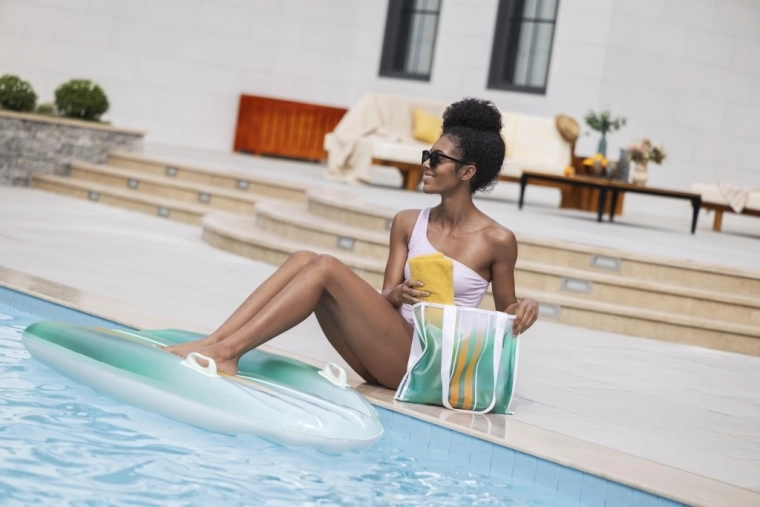 Uživajte v poletju s setom BESTWAY TAHITI 2v1 – udobnim napihljivim ležiščem z močnimi ročaji in prostorno plažno torbo v usklajenem dizajnu. Stabilna I‑beam konstrukcija, hitro napihovanje z eno zračno komoro in nosilnost do 100 kg delajo ta set idealno izbiro za bazen, jezero ali morje.