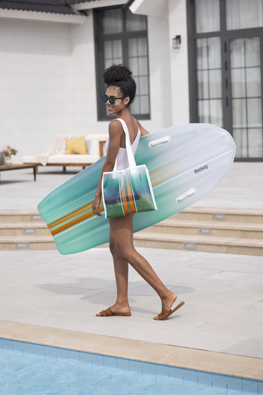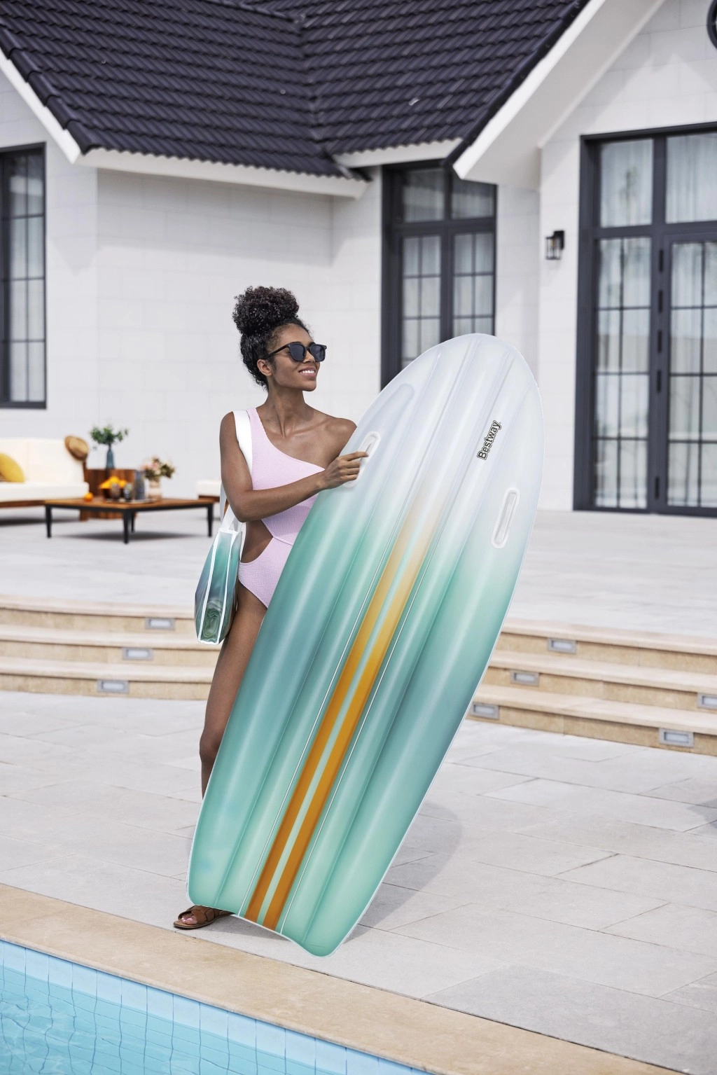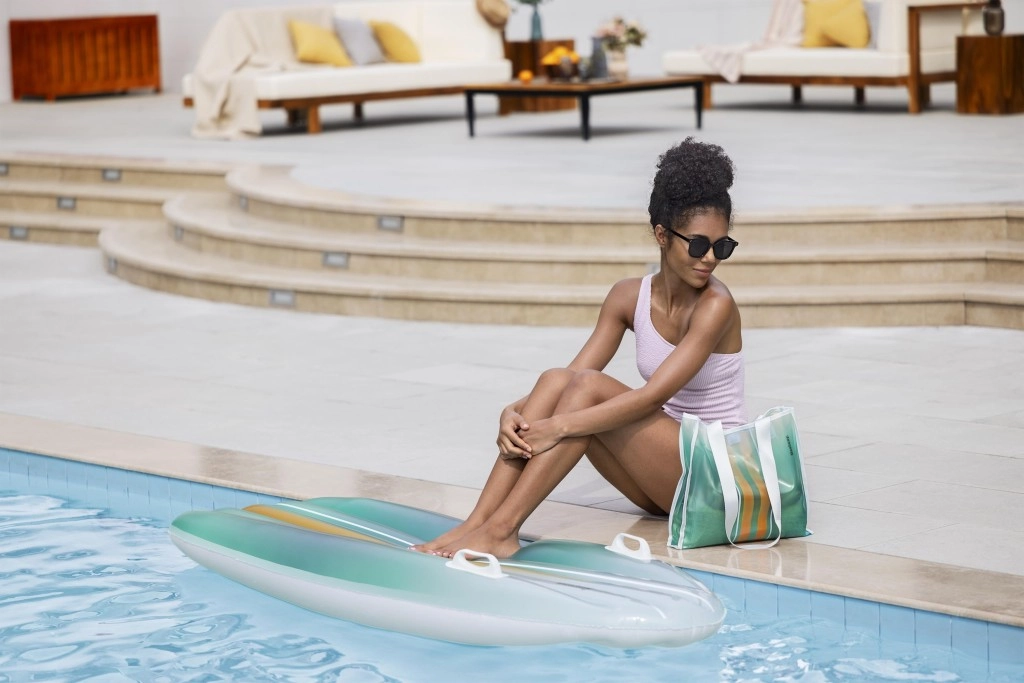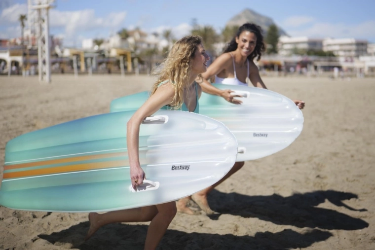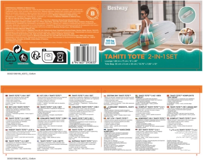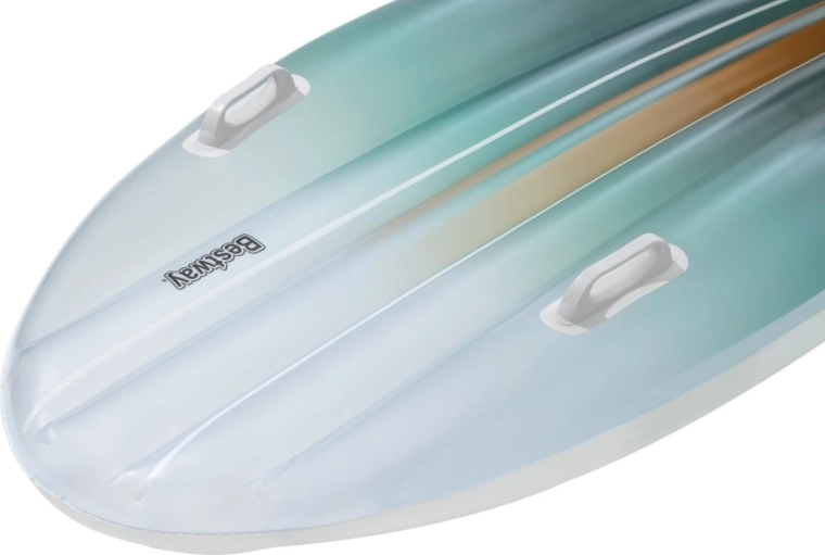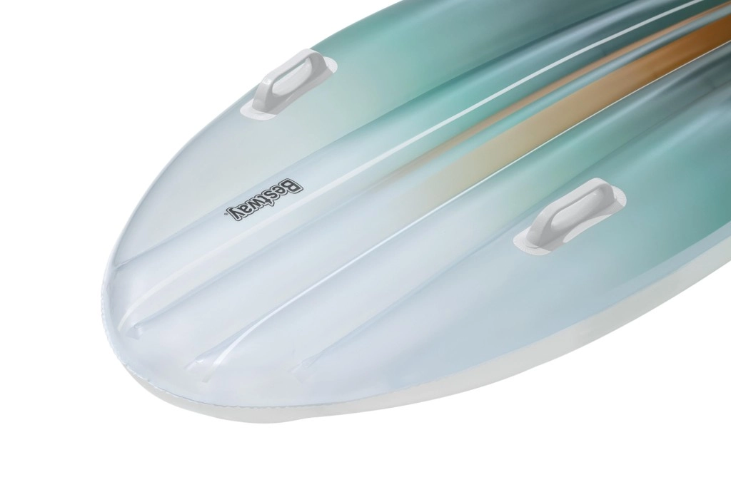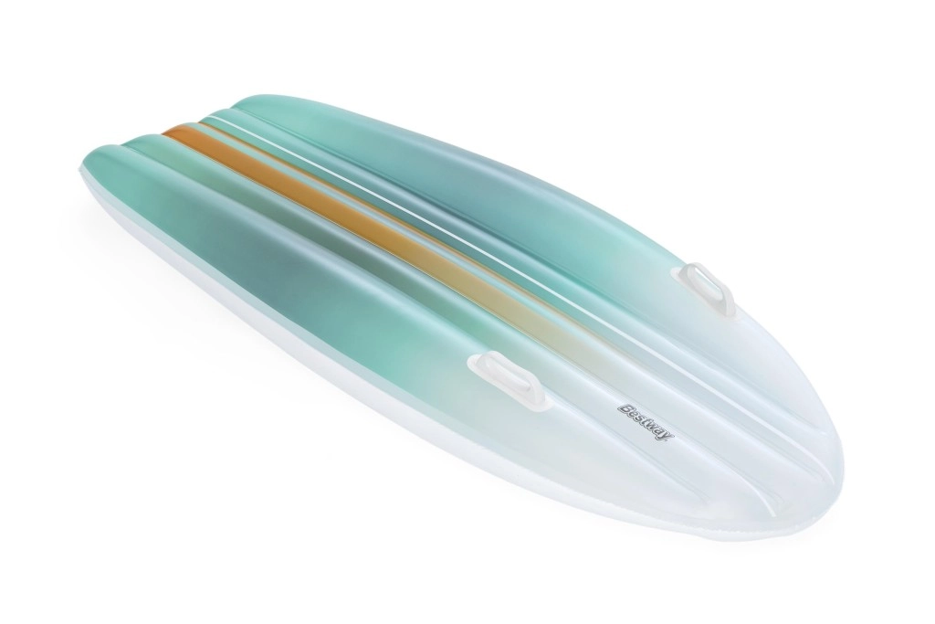 Set BESTWAY TAHITI združuje praktičnost in slog za brezskrben počitek ob vodi. Ležišče z hidrodinamično obliko in dvojimi integriranimi ročaji zagotavlja zanesljivost pri vkrcavanju in med sproščanjem. Usklajen cijanski gradientni potisk na ležišču in torbi deluje sveže in poletno, zato boste izstopali ob bazenu ali na plaži.