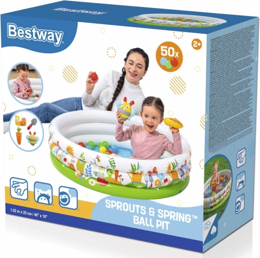Odkrijte igriv svet pomladi z motivi cvetlic, čebel in vrta. Bestway Sprouts & Spring ponuja mehke, napihljive stene za varno igro, ki razvija fino motoriko, koordinacijo in čutno zaznavanje z barvami, oblikami in teksturami. V toplih dneh ga preprosto napolnite z vodo in spremenite v osvežujoče otroško kopališče.