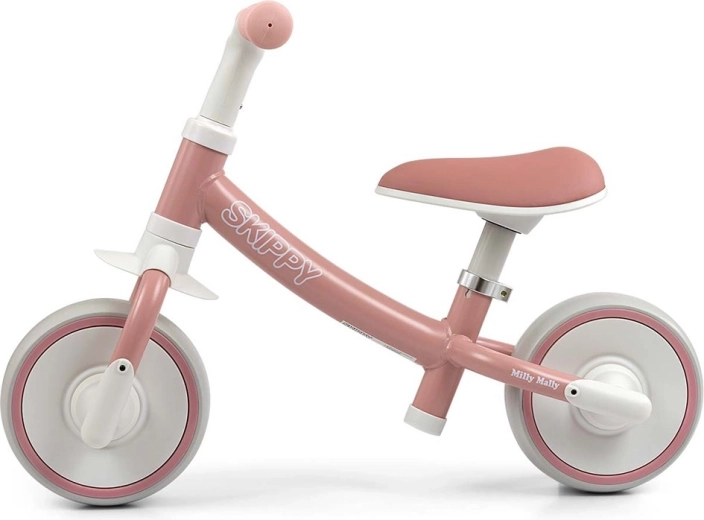 Poganjalo MILLY MALLY Skippy je odličen prvi korak k samostojni vožnji. Zahvaljujoč ergonomični obliki podpira pravilno držo telesa, medtem ko tihe in široke EVA gume (6 cm) brez vzdrževanja odlično blažijo neravnine. Nizka teža olajša prenašanje staršem, otroku pa daje več samozavesti pri odrivanju.