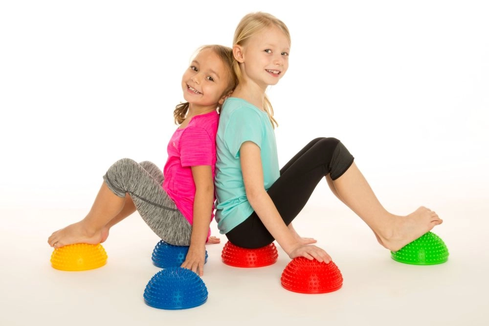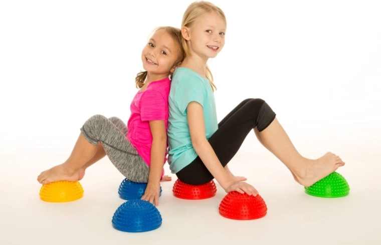 Barvite polkrogle spodbujajo otroke k gibanju. Izboljšujejo ravnotežje, gibčnost in zanesljivost koraka na zabaven način.