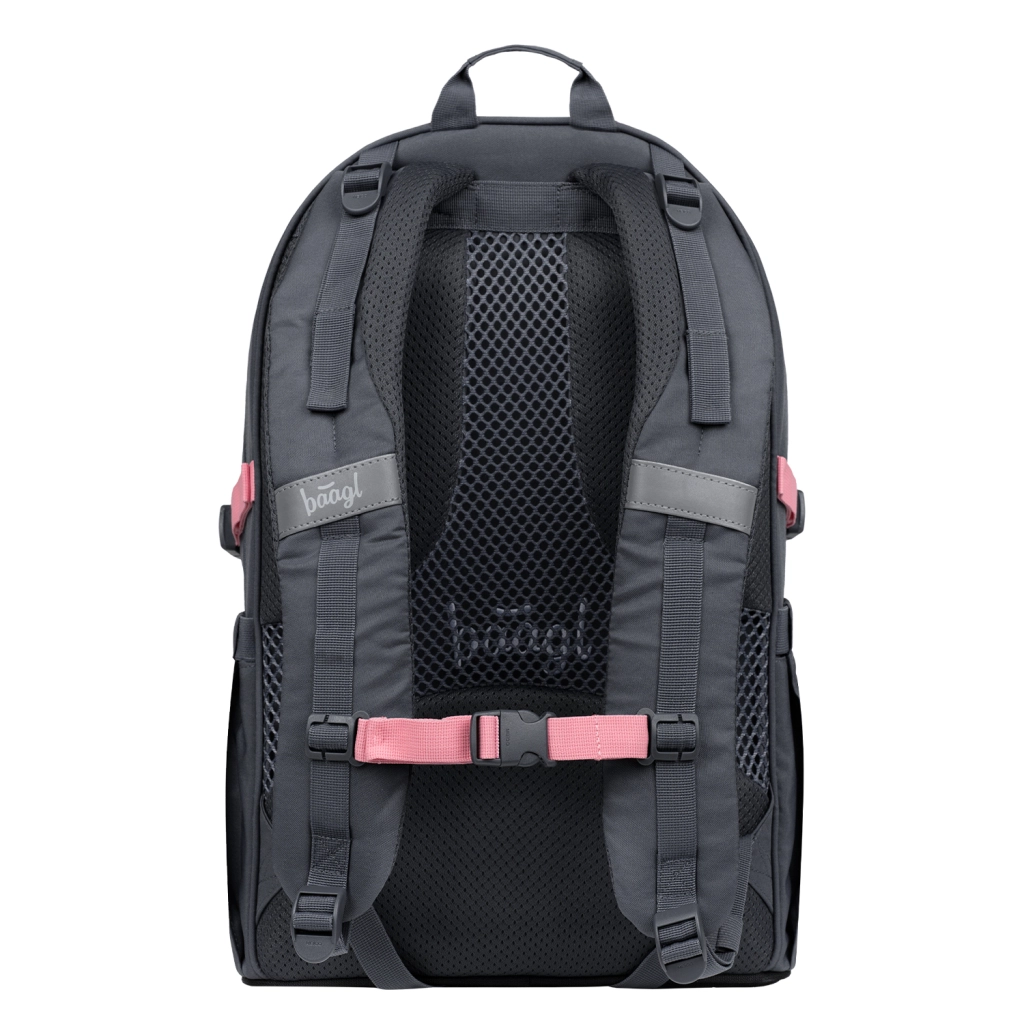 Šolski nahrbtnik BAAGL Core Logo v rožnati barvi je zasnovan za udobno in zdravo nošenje šolskih potrebščin. Z ergonomskim dizajnom, nastavljivimi naramnicami in anatomsko oblikovanim hrbtnim delom z ventilacijo zagotavlja enakomerno razporeditev bremena tudi pri vsakodnevni uporabi. Nizka teža 900 g in prostornina 25 l ga naredita idealno izbiro za učence od 3. razreda dalje.