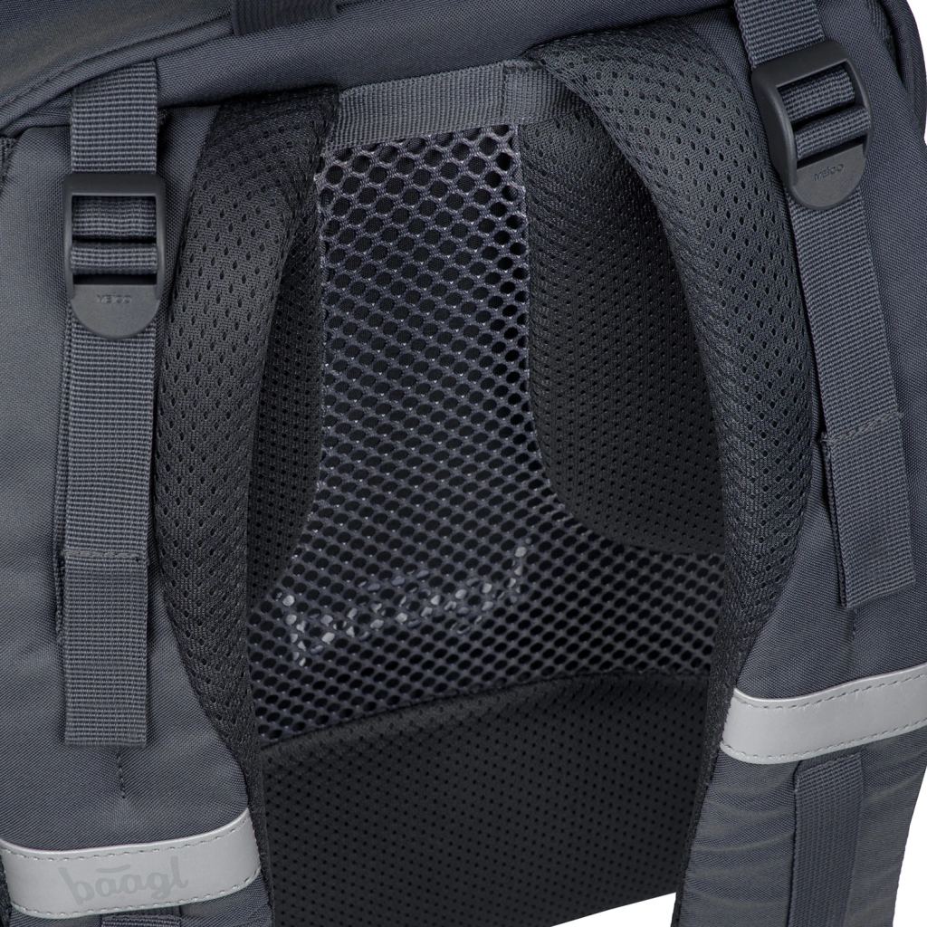 Lahek in ergonomičen šolski nahrbtnik BAAGL Core Logo za otroke od 3. razreda ponuja prostornino 25 l, le 900 g, anatomsko oblikovan hrbtiščni del z zračenjem ter oblazinjen žep za 15" prenosnik. Izdelan je iz rekliranega vodoodbojnega materiala s certifikatom GRS, ima zanesljive zadrge YKK, odsevne elemente in praktično organizacijo v treh prekatih.