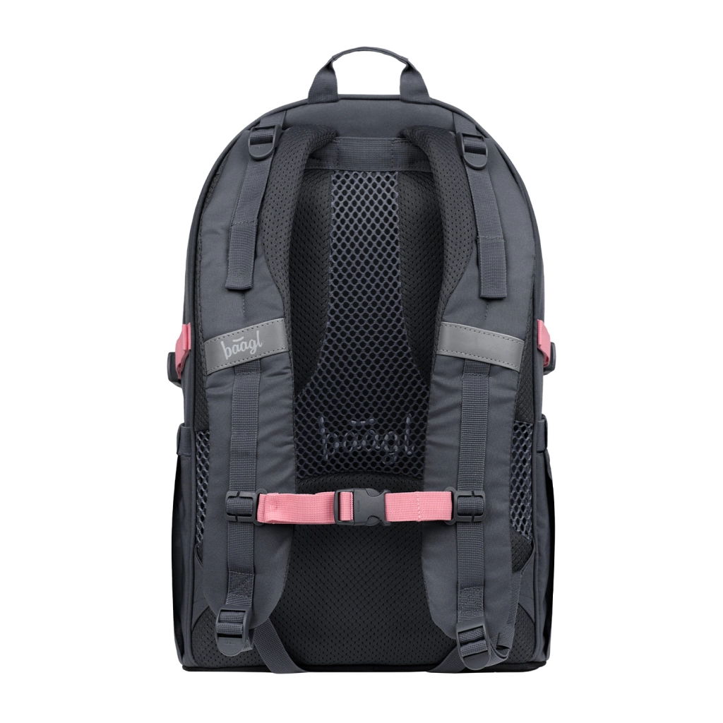 Šolski set BAAGL Core Logo rožnat je zasnovan za vsakodnevno udobje in maksimalen pregled. Nahrbtnik s prostornino 25 l in težo le 900 g ponuja tri prekate, notranji organizator, termo žep za malico in oblazinjen žep za 15" prenosnik. Anatomsko oblikovano, zračno hrbtišče ter nastavljive naramnice zagotavljajo zdravo nošenje in enakomerno porazdelitev bremena.