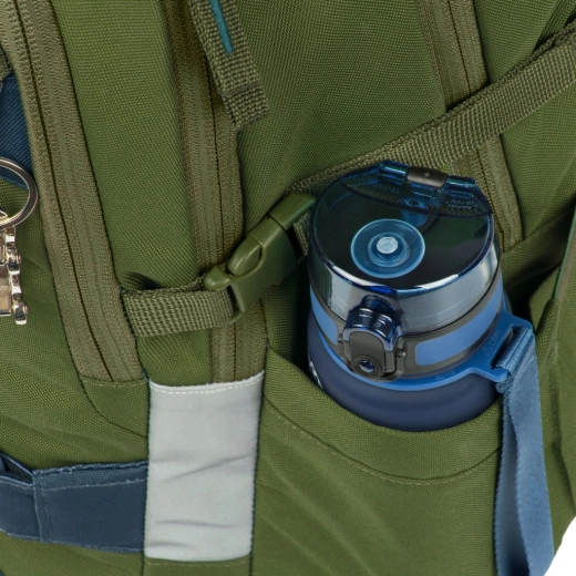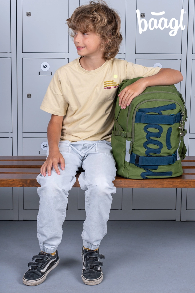 Lahek in trpežen šolski nahrbtnik BAAGL Skate Olive GRS je idealen za učence od 3. razreda dalje. Ponuja anatomsko oblikovan hrbtni del, 3 prostorne komore, oblazinjen žep za 15" prenosnik, trakove za pritrditev rolke ter vrsto odsevnih elementov za varnost. Izdelan je iz recikliranega, vodoodbojnega materiala z visokokakovostnimi zadrgami YKK.
