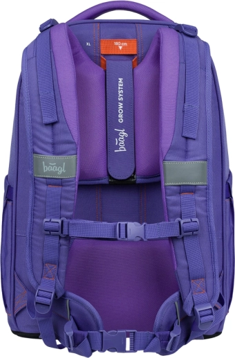 Popoln šolski set BAAGL v sodobni vijolično-oranžni kombinaciji vključuje ergonomski nahrbtnik Skate Max, peresnico, vrečko za copate, športno torbo in ledvinko. Ponuja lahek in nastavljiv hrbtiščni sistem, vodoodporen recikliran material z GRS certifikatom, premišljeno organizacijo in odsevne elemente za varnost – idealna izbira za učence od 3. razreda naprej.