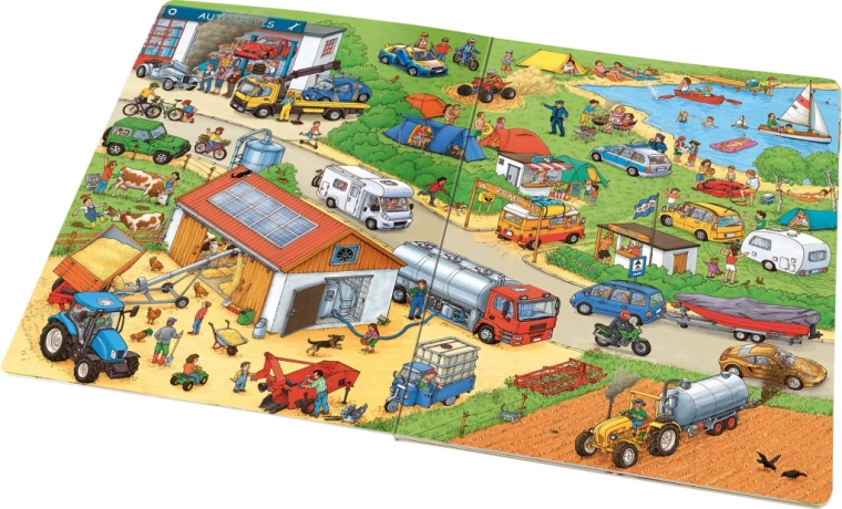 Z interaktivnim ogledovanjem slik si otroci urijo sposobnost zbranosti in logičnega razmišljanja. Starši se lahko pogovarjajo o tem, kaj vidijo na straneh, ter skupaj iščejo predmete, vozila ali like. To prinaša zabavo na poti in doma ter podpira naravni razvoj jezika.