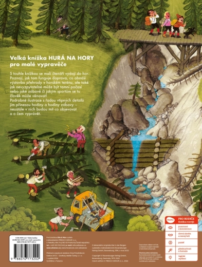 Podajte se z otroki na pustolovsko odpravo v gore. Ta velikoformatna knjiga z bogatimi in podrobnimi ilustracijami predstavlja, kako življenje v gorah poteka – od vsakdanjega življenja in dela domačinov do pohodništva, smučanja in drugih dejavnosti, ki jih uživajo obiskovalci. Zaradi številnih zabavnih podrobnosti bodo otroci vedno znova odkrivali nove stvari za raziskovanje in pripovedovanje.