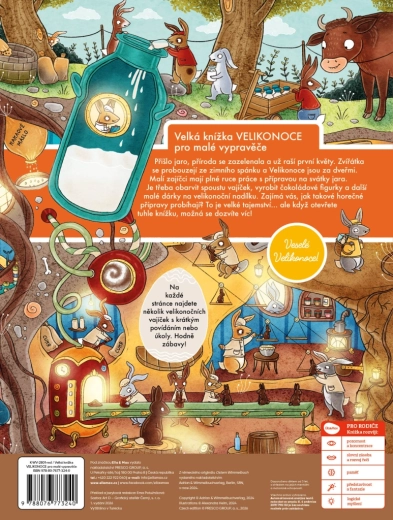 Na vsaki strani otroci odkrijejo več velikonočnih jajčk s kratkimi besedili, nalogami in drobnimi izzivi. Zato je knjiga idealna za skupno branje in samostojno raziskovanje.