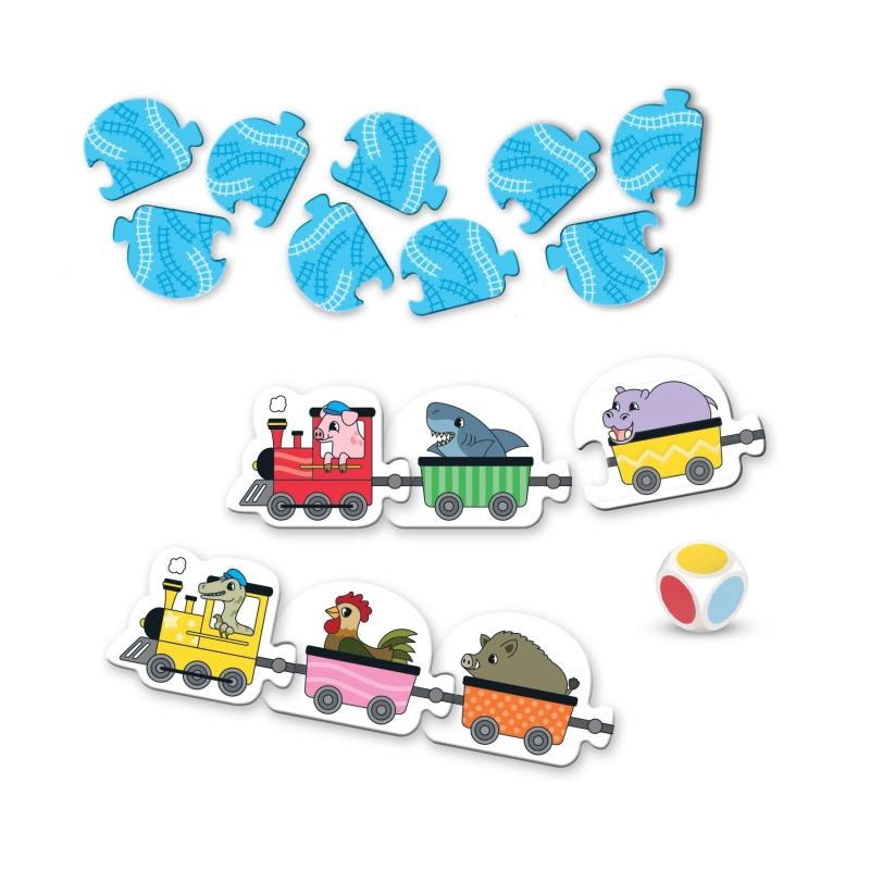 Povežite vagone in se odpravite na pot zabave! Barviti vlak je preprosta učna igra za otroke od 2 let, ki razvija prepoznavanje barv, spoznavanje živalic in podpira fino motoriko. Vrzi barvno kocko in najdi pravi vagon – idealno za 1–6 igralcev in prvo skupno igranje.