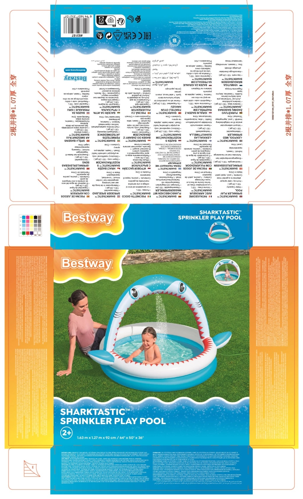 Naj bo poletje nepozabno z otroškim bazenčkom Sharktastic! Vesel dizajn v obliki morskega psa z rdečimi »zobmi« in stranskimi plavutmi bo navdušil vsakega malega plavalca. Ustni lok deluje kot pršni lok – le priključite vrtno cev in nežna vodna fontana poskrbi za prijetno osvežitev.