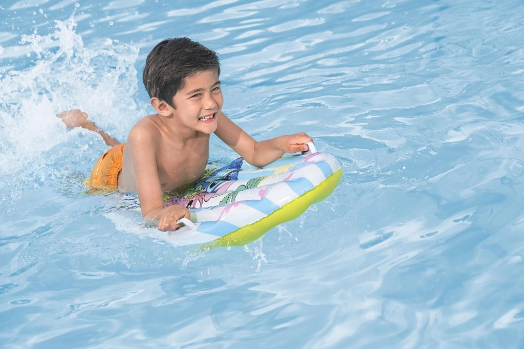 Uživajte v poletju z igrivo napihljivo desko s superjunakom DISNEY Stitch. Lahka, stabilna in varna deska z merami 114 × 46 cm je idealna za otroke 3–10 let. Zahvaljujoč dvema čvrstima ročajema, več napihljivim komoram in odpornemu materialu nudi zanesljivost in udobje pri vodnih radostih v bazenu in na mirni vodni gladini.