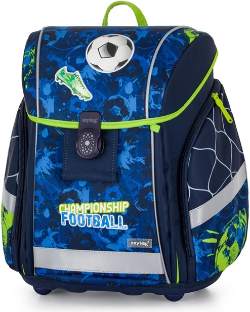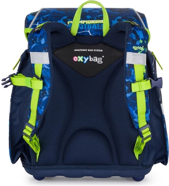 Šolski set OXYBAG Premium Light nogomet je zasnovan za največje udobje in varnost na vsakodnevni poti v šolo. Lahka zasnova s težo le 970 g, ergonomsko oblikovan hrbet in mehčane ramenske naramnice iz zračnega materiala zagotavljajo celodnevno udobje. Praktična razporeditev z glavno komoro z razdelilnikom, imensko kartico in urnikom pomaga ohranjati red v učbenikih in zvezkih.