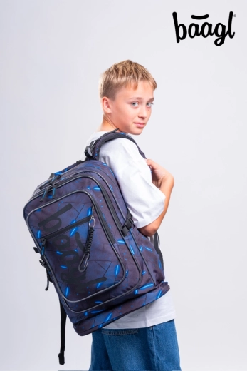 Stilski šolski set BAAGL Cubic Flash vključuje ergonomski nahrbtnik z organizatorjem in žepom za 15'' prenosnik, prostorno peresnico ter praktično vrečko za copate ali šport. Lahka zasnova, vodoodporen material, odsevni elementi za varnost in trajnostna certifikacija GRS delajo ta set idealno izbiro za vsakodnevno šolsko uporabo.