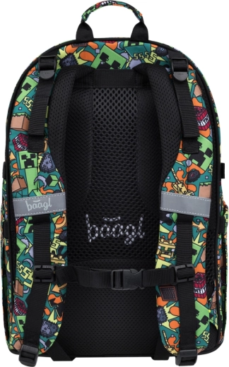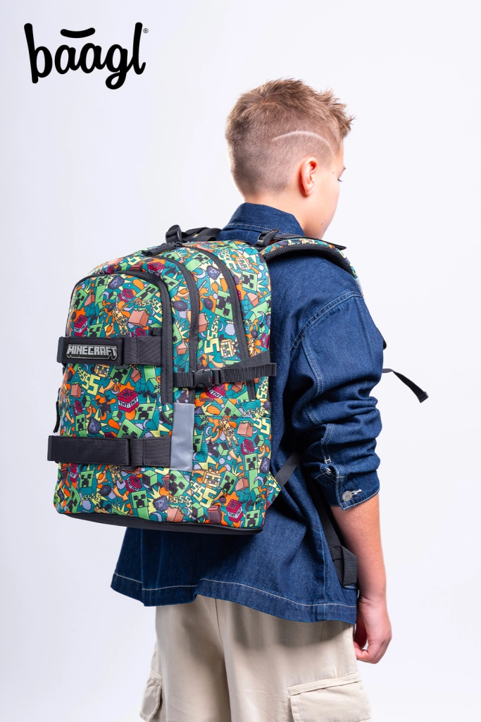 Iščete šolski nahrbtnik, ki prenese vsakodnevne obremenitve, ostane udoben na hrbtu in hkrati pritegne z izrazitim dizajnom? BAAGL Skate MINECRAFT Chaos izpolni pričakovanja otrok in staršev. Zahvaljujoč anatomsko oblikovanemu hrbtnemu delu z ledveno oporo in popolnoma nastavljivim kompresijskim trakovom se nahrbtnik odlično prilagodi postavi in udobno sedi ves dan.