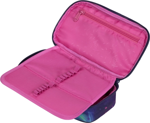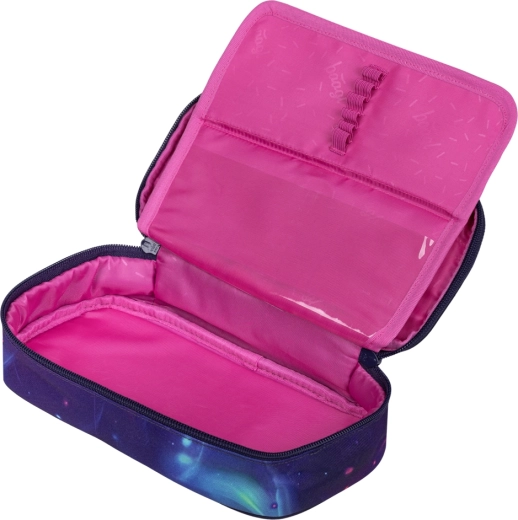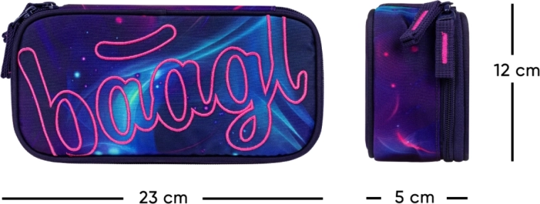 Eleganten peresnik Baagl Nova GRS v galaktičnem dizajnu združuje moderen videz, praktičnost in trajnost. Glavni predal z dvojno preklopno loputo omogoča pregledno shranjevanje svinčnikov, barvic, flomastrov in ravnil, medtem ko notranji žep ter prozorno okence za urnik pomagata ohranjati šolski dan pod nadzorom.