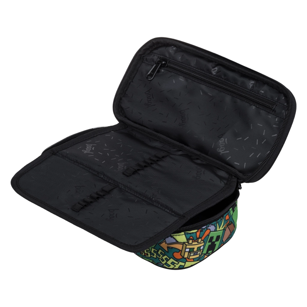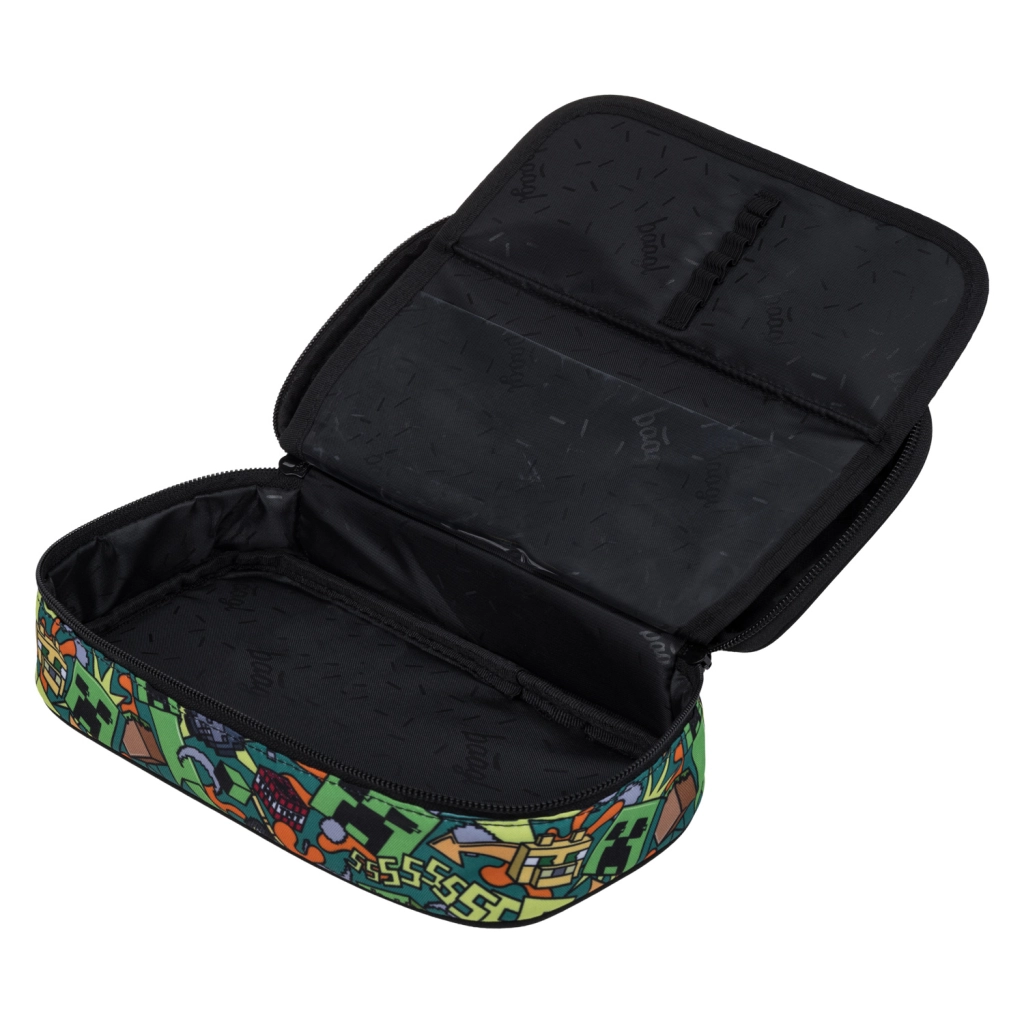 Praktičen šolski etui BAAGL s priljubljenim igralnim motivom MINECRAFT Chaos bo poskrbel, da bodo vse vaše pisalne potrebščine na enem mestu. Kompaktna oblika se zlahka prilega šolskemu nahrbtniku, pametna notranja razporeditev pa pomaga ohranjati red skozi ves šolski dan.