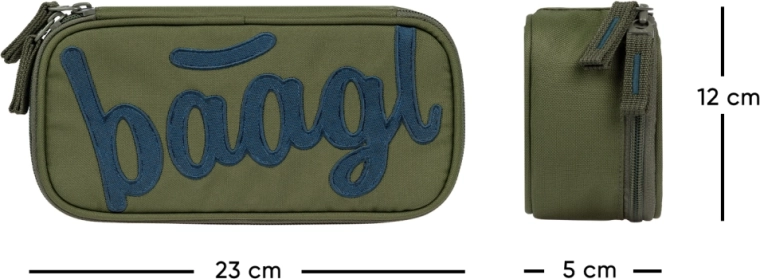 Eleganten in vzdržljiv peresnik Baagl Olive je zasnovan za vsakodnevno šolsko uporabo. Kompaktni etui se zlahka prilega v nahrbtnik, hkrati pa nudi dovolj prostora za vse pisalne potrebščine in drobnarije. Kakovostne zadrge YKK in čvrsta zasnova zagotavljajo dolgo življenjsko dobo in zanesljivo uporabo.