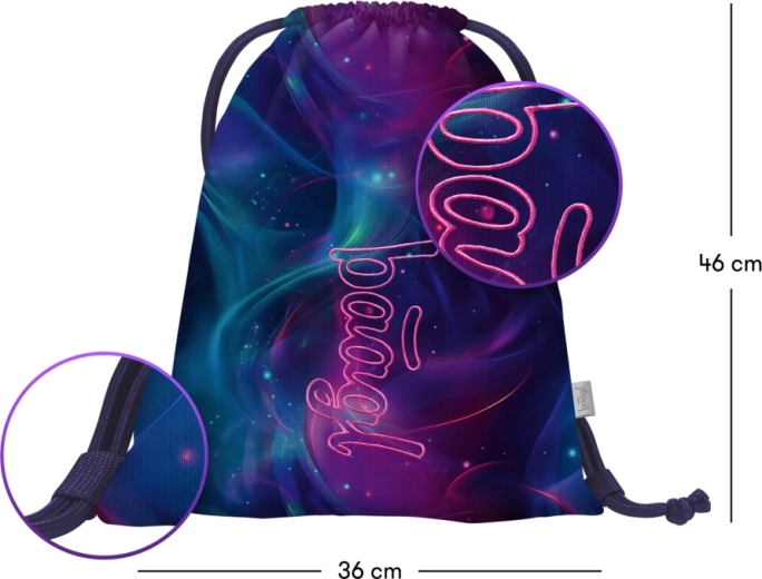 Izberite praktično in moderno nahrbtno vrečo z izrazitim motivom galaksije. Baagl Nova GRS odlično služi za copate, športno opremo in drobnarije na poti. Zahvaljujoč trpežni, pralno-brisljivi tkanini je kos vsakodnevni uporabi in jo je enostavno vzdrževati.