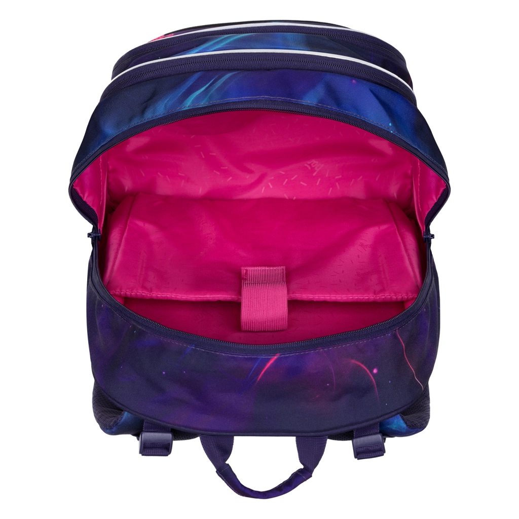 Podloženi, nastavljivi naramni trakovi, prsni pašček in mrežasto hrbtišče zagotavljajo stabilnost, zračenje ter pravilno porazdelitev teže na poti v šolo in na dejavnosti.