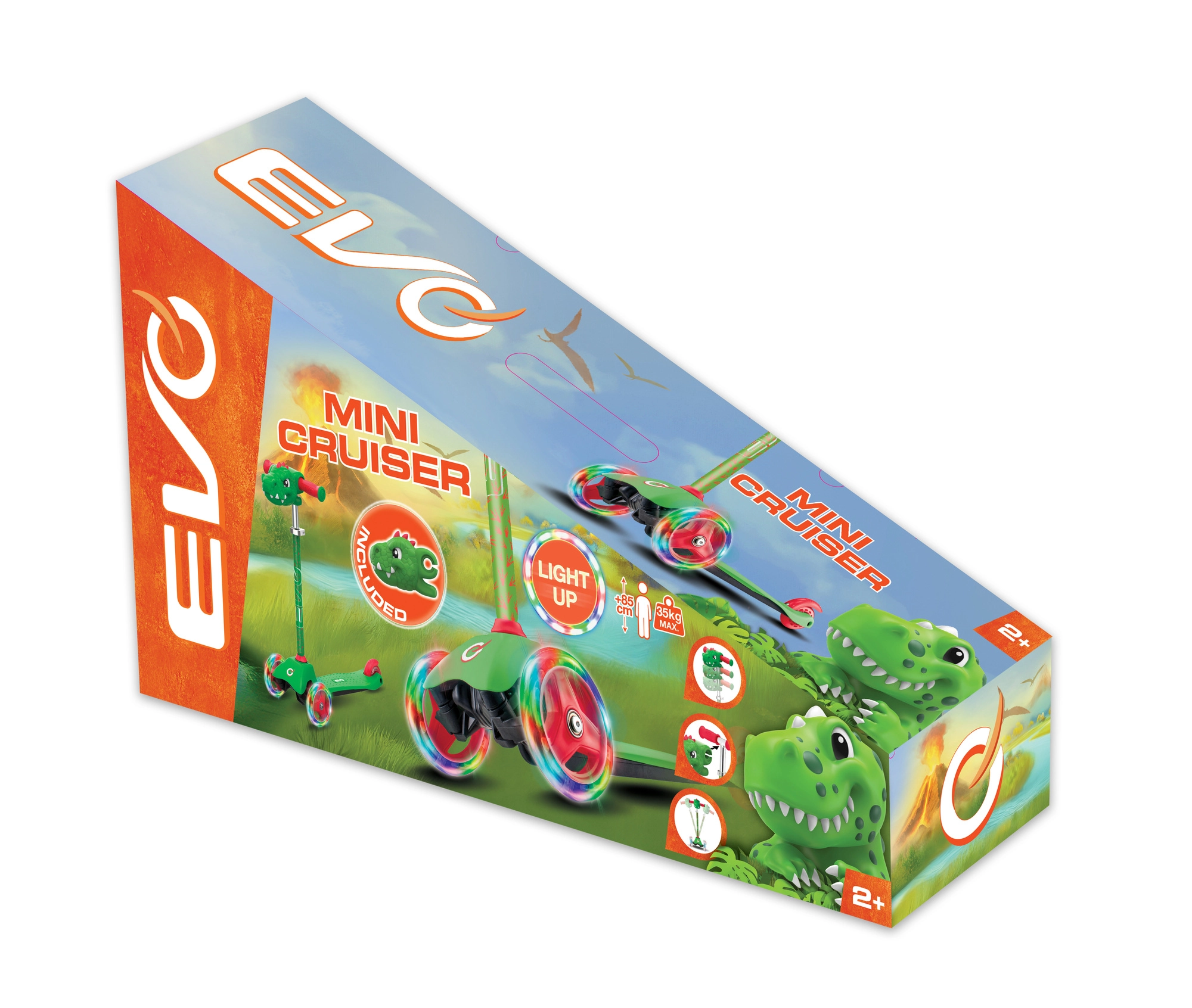 Skiro EVO Light Up Mini Cruiser je odlična izbira za prve vožnje na poganjalcu/skiroju. Zaradi stabilne trikolesne zasnove in balančnega krmiljenja z nagibanjem si otroci naravno urijo ravnotežje in koordinacijo. Široka stopalna deska in udobni TPR ročaji zagotavljajo zanesljiv oprijem in udobje med vožnjo.