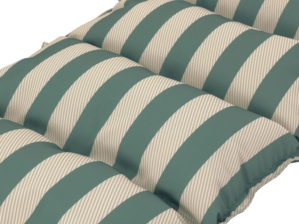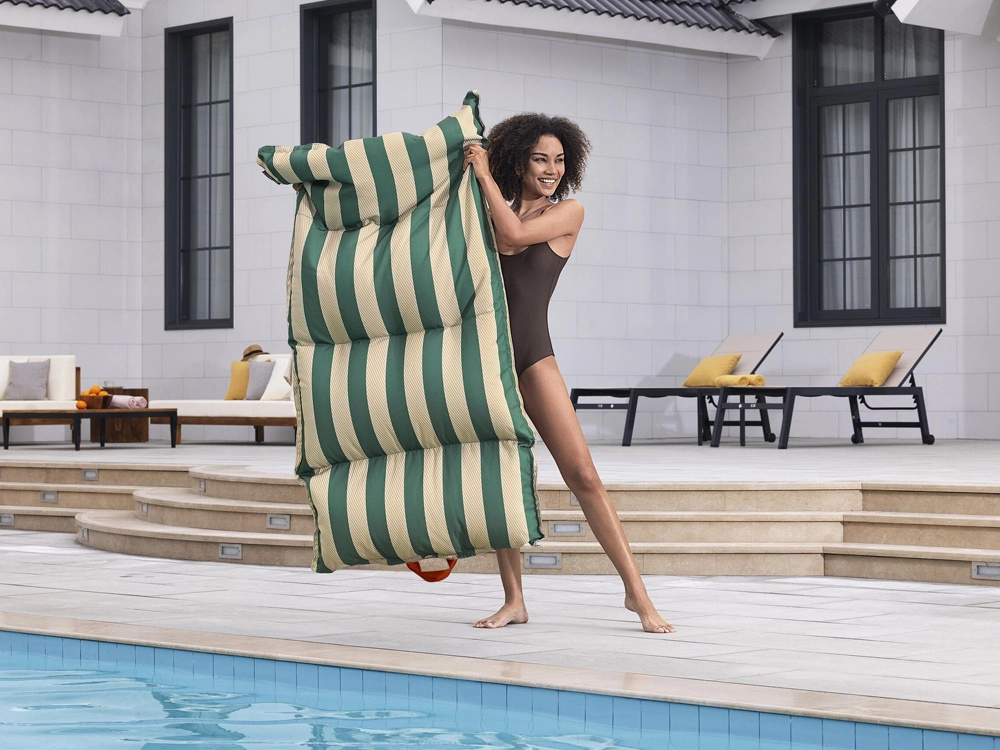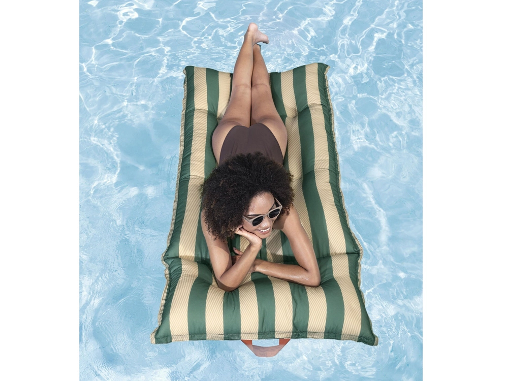 Pametno mrežasto dno učinkovito odvaja vodo, zato se blazina enostavno ohranja čista in je hitro pripravljena za naslednjo uporabo. Zahvaljujoč dimenzijam 183 × 90 × 20 cm in nosilnosti do 140 kg je primerna za odrasle in starejše najstnike (14+). Stilske zeleno–bež črte se odlično podajo vašemu pool stilu.