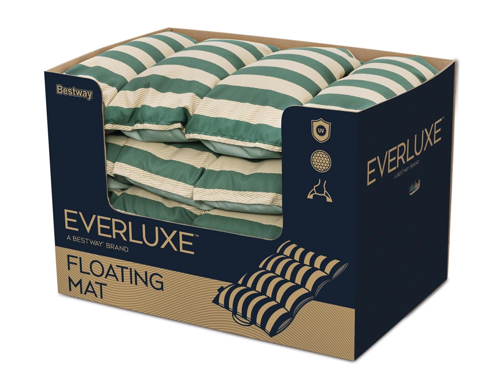 Plavajoča blazina Bestway Everluxe je odlična izbira za sproščeno poležavanje in igriv počitek na vodni gladini. Kakovostna, hitrosušeča tekstilija z UV-zaščito kljubuje soncu, medtem ko polistirenska polnitev zagotavlja odlično vzgonsko stabilnost in mehak udobni ležalni občutek. Praktični najlonski ročaji olajšajo prenašanje in rokovanje ob vodi.