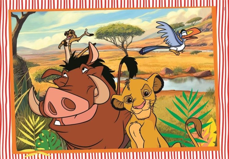 Odkrijte veselje do sestavljanja z dvojnim paketom sestavljank 2x20 koščkov, kjer otroke čakajo prikupni prizori iz pravljic LEVJI KRALJ in DUMBO. Kakovosten tisk v tehnologiji Super Color zagotavlja čudovito jasne barve in trajen videz, ki bo navdušil male sestavljavce. Koščki so trdni, dobro se prilegajo in so prilagojeni otroškim rokam.