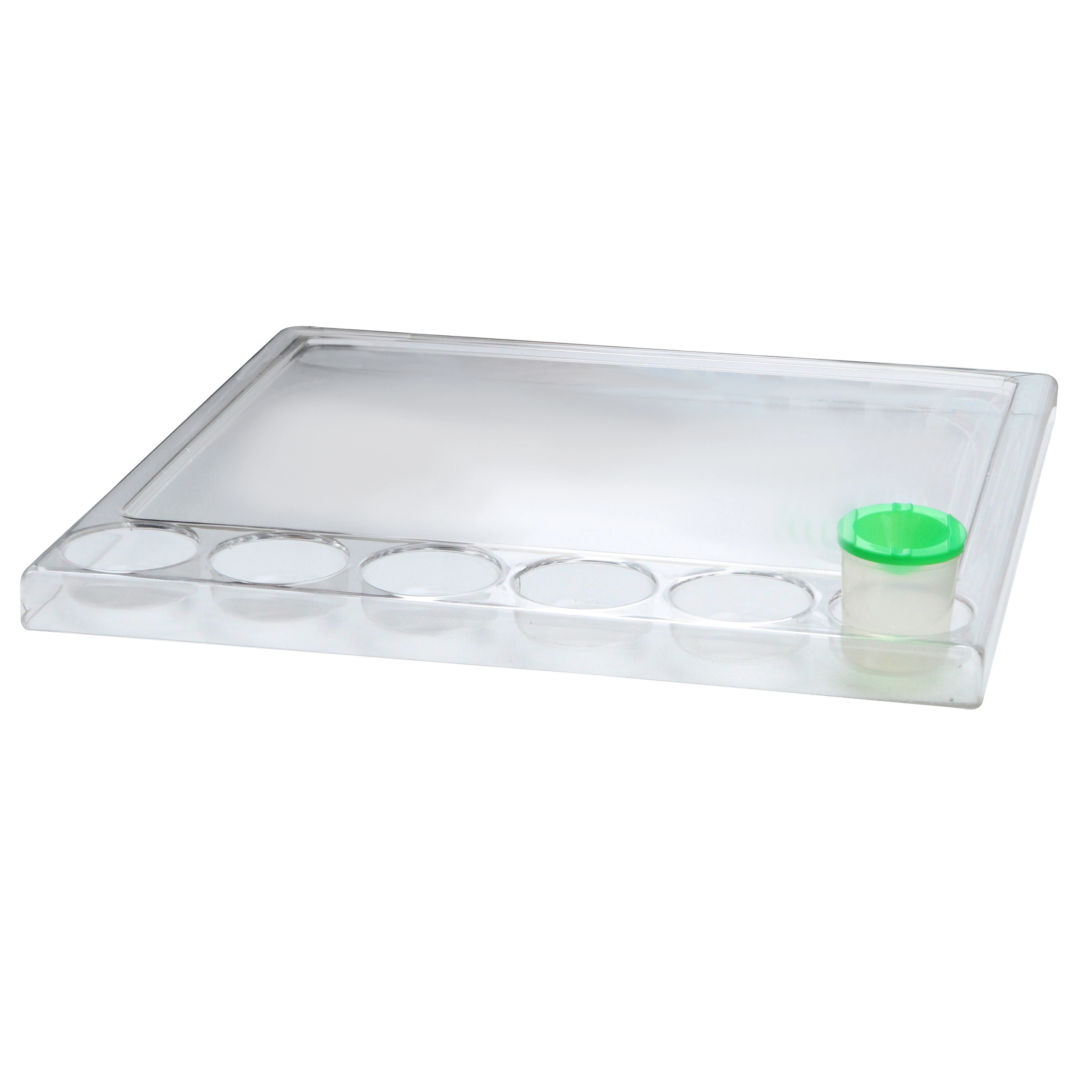 Prozorna slikarska podloga MASTERKIDZ nudi velikodušno delovno površino 55 × 55 cm za slikanje, mešanje barv in ustvarjanje edinstvenih vzorcev. Zaradi združljivosti z LED ploščo nastajajo učinkovite osvetljene slike, ki otroke motivirajo k nadaljnjemu raziskovanju barv, svetlobe in oblik.