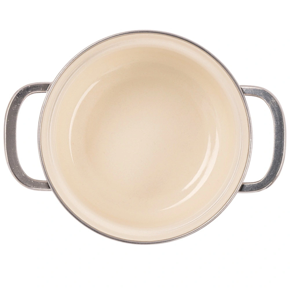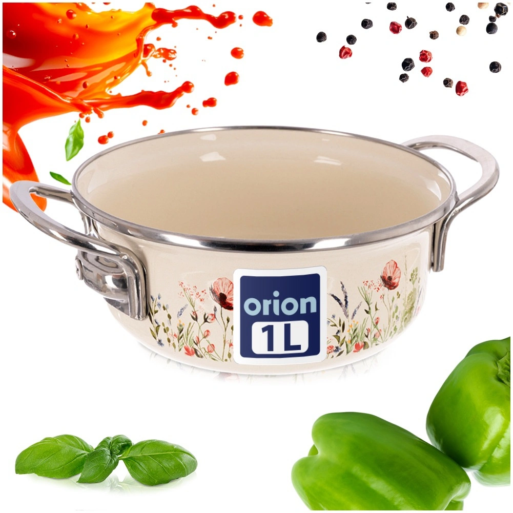 Tradicionalen videz, sodobna funkcionalnost. Ta krem lonec z emajlirano površino in nerjavečim robom odlično razporeja toploto, je odporen proti koroziji in ga je lahko čistiti. Dekor travniških cvetov bo vaši kuhinji dodal čar retro sloga, medtem ko je praktična prostornina 950 ml idealna za omake, juhe ali hitre porcije za enega do dva.