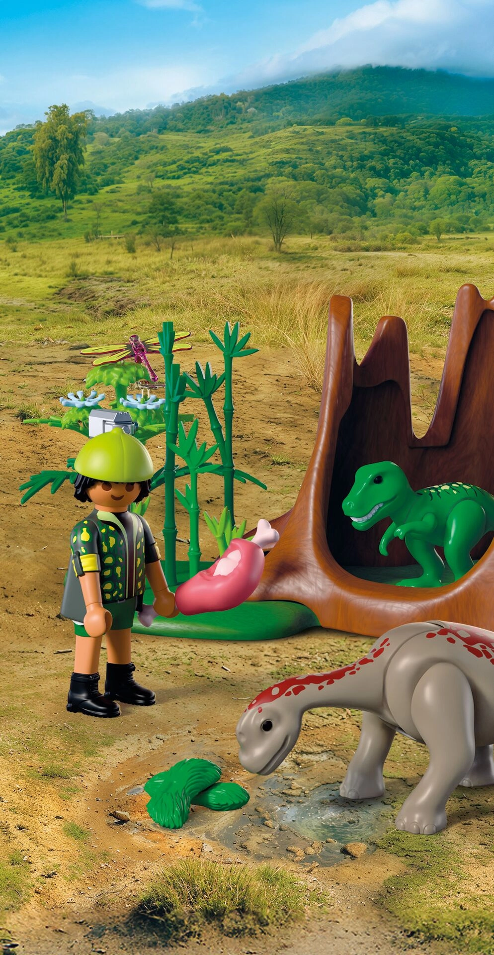 Realistične podrobnosti okolja – štor, bambusi, cvetovi in rastje – skupaj s figuricami dinozavrov otroke potegnejo v zgodbe, polne napetosti. Set je odličen za igranje vlog in ga je mogoče kombinirati z drugimi seti PLAYMOBIL za še večji svet prazgodovinskih dogodivščin.