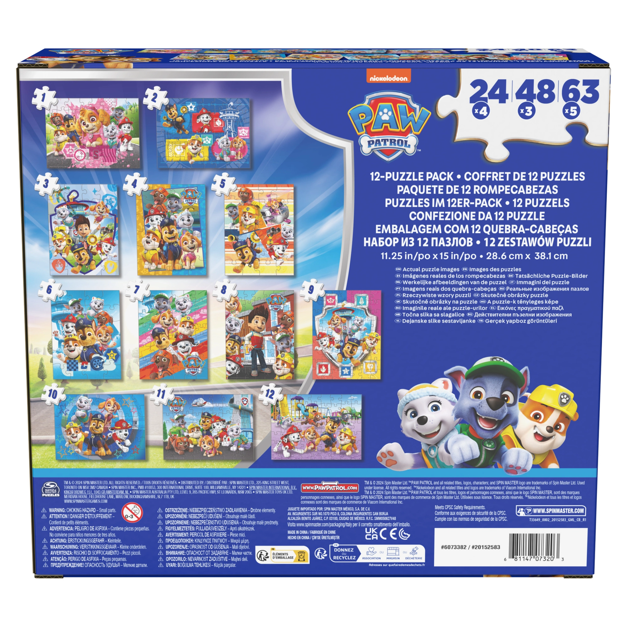 Ta barvit komplet sestavljank znamke Spin Master je navdihnjen s priljubljeno serijo PAW PATROL. Otroci lahko sestavijo slike s kužki Marshall, Rubble, Chase, Rocky, Zuma, Skye in njihovimi prijatelji. Vsaka dokončana slika meri 38,1 × 28,5 cm, zato bo izstopala na vsakem otroškem mizici.