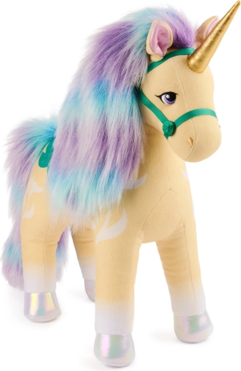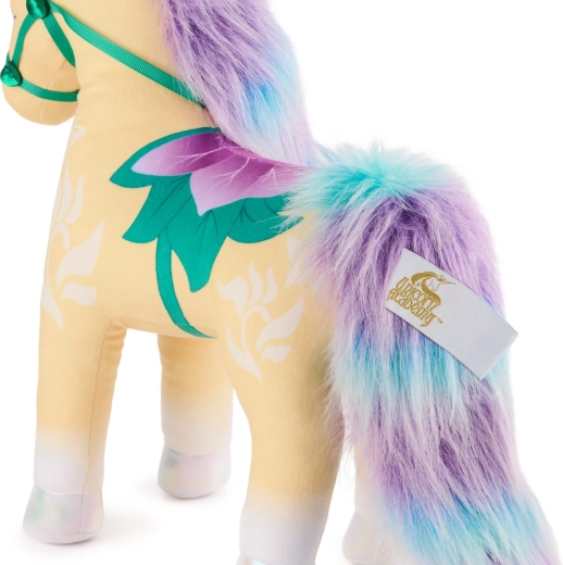 Odkrijte čarobni svet Unicorn Academy z mehkobožnim spremljevalcem – plišastim samorogom Leaf višine 38 cm znamke Spin Master. Ima zlat bleščeč rog, opalizirajoča kopita ter razkošno grivo in rep v odtenkih turkizne in vijolične. Nežen, žameten pliš, izrazite vijolične oči in botanično sedlo z uzdo ga naredijo za idealno igračo za crkljanje, ustvarjalno igro in kot stilsko dekoracijo otroške sobe.